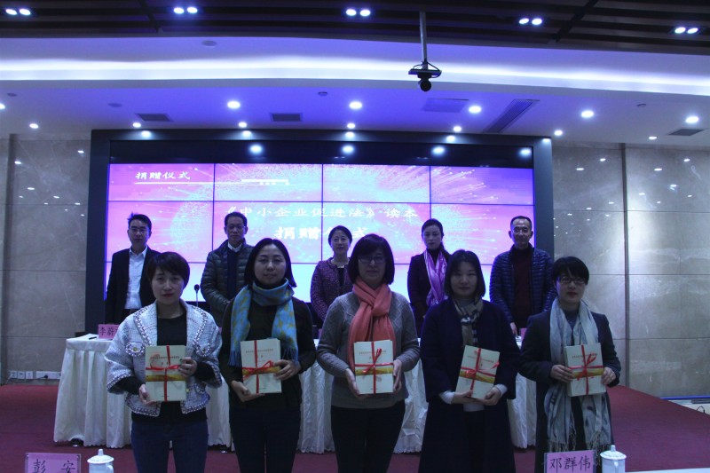 會議現(xiàn)場舉行了捐贈儀式,成都市企業(yè)代表獲贈《中小企業(yè)促進法》讀本。