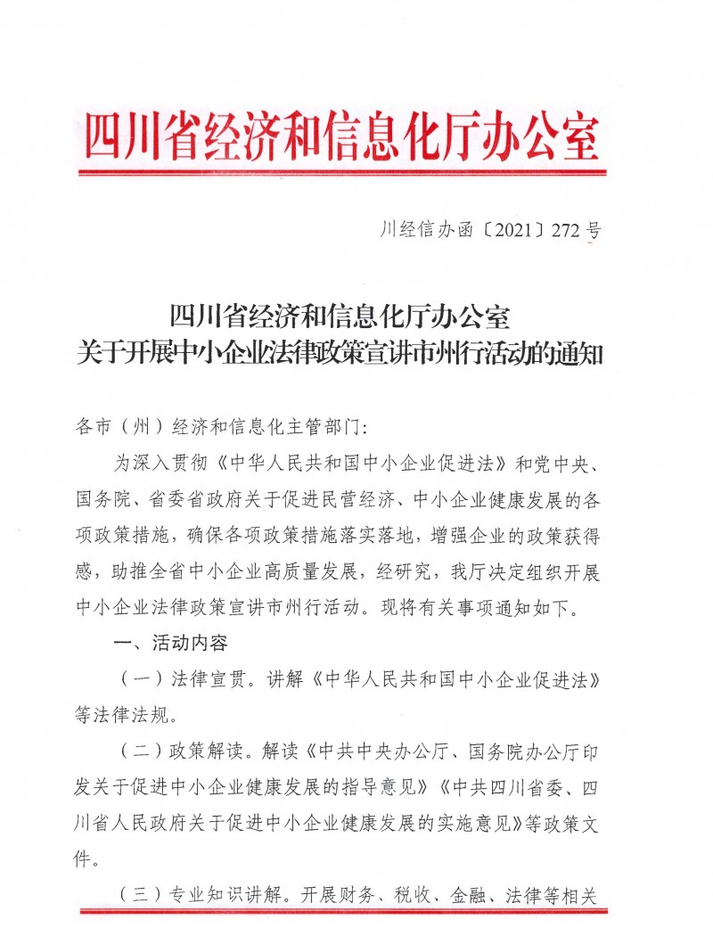 關(guān)于開展中小企業(yè)法律政策宣講市州行活動的通知