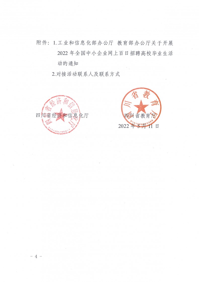 四川省經(jīng)濟和信息化廳 四川省教育廳關(guān)于做好2022年全國中小企業(yè)網(wǎng)上百日招聘高校畢業(yè)生活動相關(guān)工作的通知