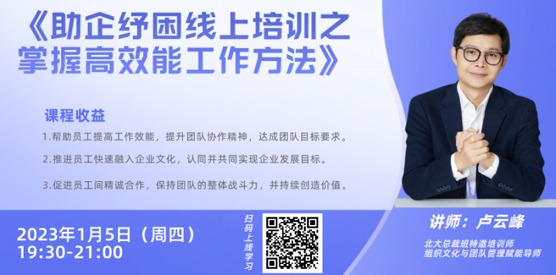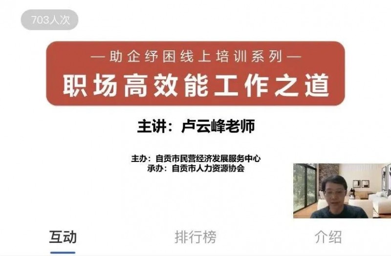 1月5日,我中心開展了《助企紓困線上培訓(xùn)之掌握高效能工作方法》成功開展,旭陽藥業(yè)、中港集團、花語精細等專精特新企業(yè)在內(nèi)的40余家企業(yè)近700余人次上線學習。